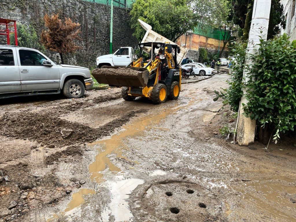 Adicionalmente, anunció trabajos preventivos incluyen la remoción del tubo de captación pluvial a 150 metros de distancia, así como el cierre del paso en la calle superior para evitar sobrecargas en la zona.